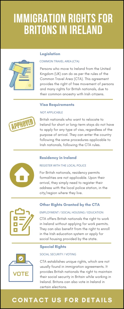 The possibility to do this is given by the CTA, as the UK is no longer part of the EU system, but still, the UK nationals benefit from very simple rules when relocating to Ireland.