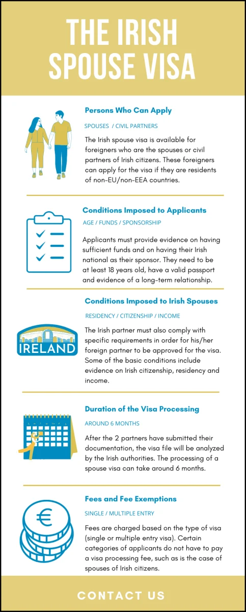 | Duration of the visa processing | A spouse visa in Ireland can be processed in approximately 6 months. |